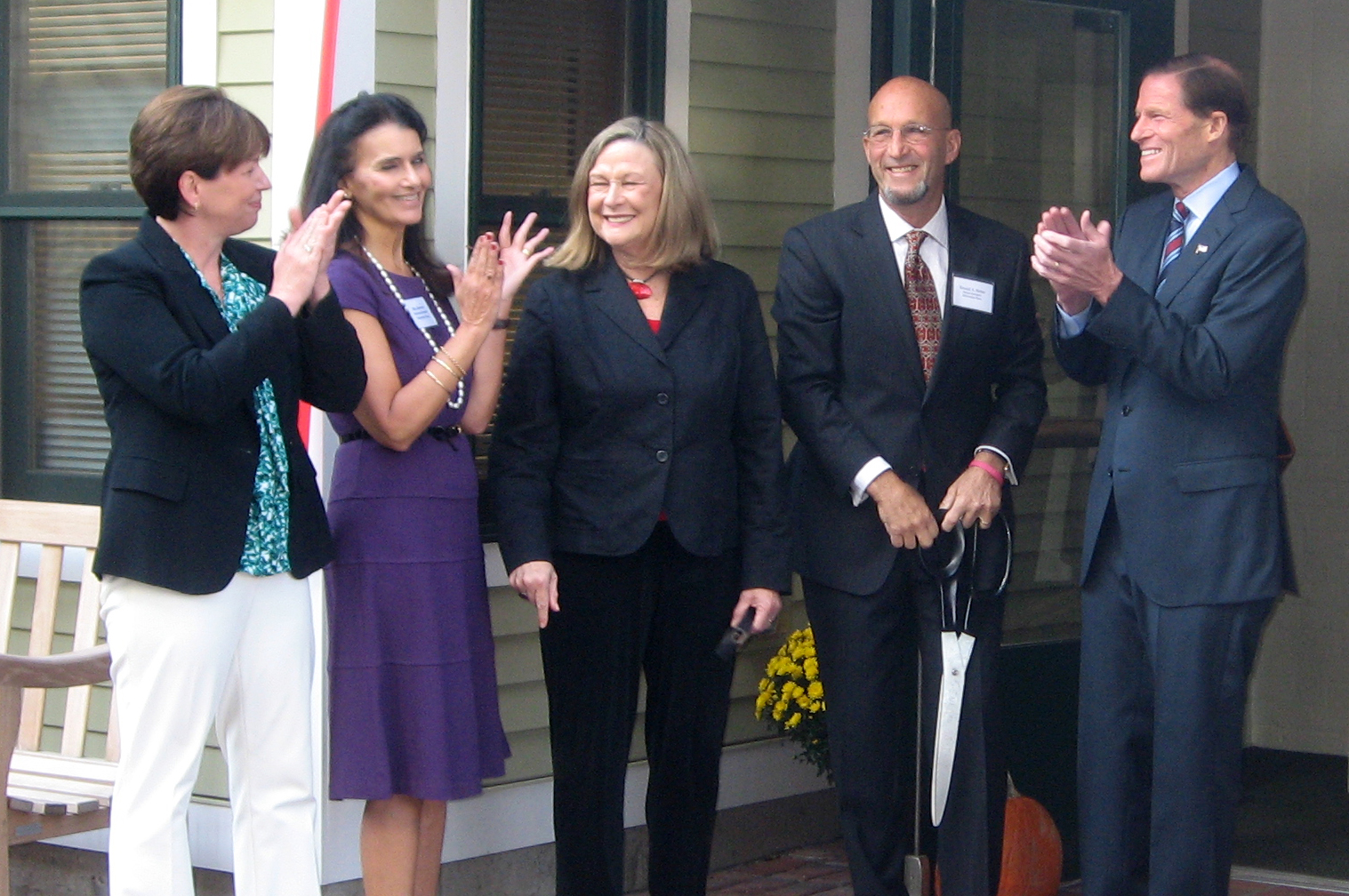 On October 18, 2012, Fellowship Place hosted the grand opening of our newly renovated Psychosocial Rehab Center. Joining Fellowship Place’s Executive Director Mary A. Guerrera for the morning dedication and ribbon cutting were Fellowship Place’s Board President Ronald A. Netter, Senator Richard Blumenthal, Dept. of Mental Health and Addiction Services Commissioner Patricia Rehmer, and State Representative Patricia Dillon. Over 100 New Haven community leaders, collaborators, and dignitaries were on scene. Fellowship Place members also participated in the opening; attendees heard a personal account of the impact the renovations have had on the men & women who come to the center for a variety of illness management activities and programming.