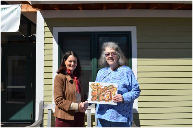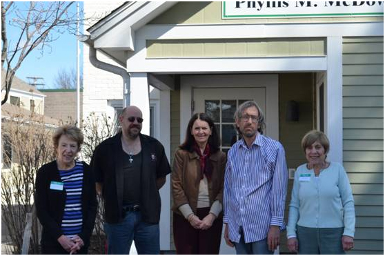 Pictured from left to right in photo 1 are Fellowship Place Board member Sue Cohen, essay winner Ray D., Fellowship Place Executive Director, Mary A. Guerrera, essay winner David F., and Fellowship Place Board member Ruth Sachs. Pictured from left to right in photo 2 are Fellowship Place Executive Director, Mary A. Guerrera, and best art project winner Pat C.