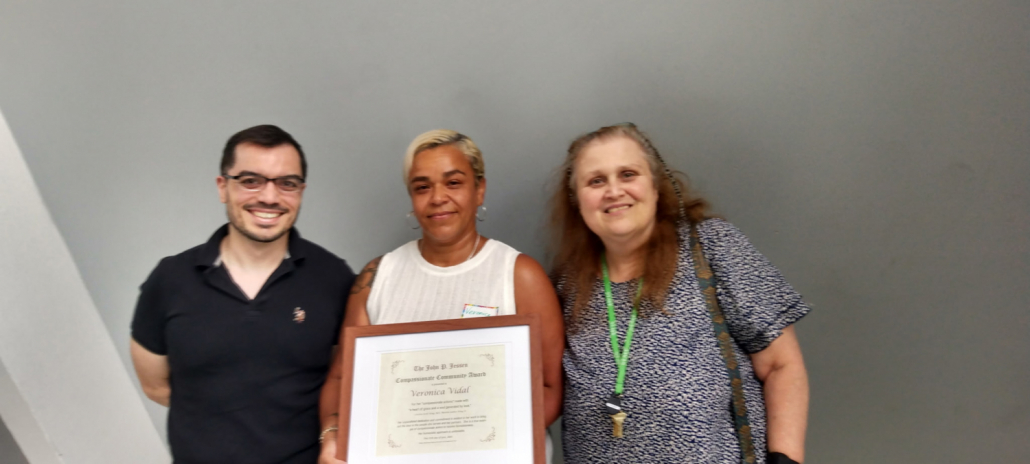 Congratulations to Fellowship Place’s Veronica Vidal,  Manager of Homeless Services, for receiving the 2025 John P. Jessen Compassionate Community Award, which is given annually to a homeless service provider in the Greater New Haven region,  who has demonstrated outstanding acceptance, care, and compassion for the homeless in our community.  Under Veronica’s leadership Fellowship’s daytime drop-in program   has expanded hours operation to seven days a week and currently serves up to 80 individuals a day.